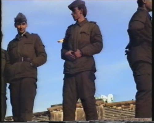 Footage of the Wall by Brandenburg Gate where numerous border guards are posted, lots of onlookers and Wall "woodpeckers" on the West side; great crowds on Kurfürstendamm