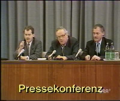 "Bericht zur Pressekonferenz des Ministerrats bezüglich der Beschlüsse zur treuhänderischen Verwaltung von Volkseigentum und von volkseigenen Betrieben (VEB). Es soll eine Anstalt zur treuhänderischen Verwaltung des Volkseigentums (Treuhandanstalt) gegründet werden. Unseriöse Berichterstattungen in der Presse der BRD bezüglich einer bevorstehenden Währungsunion werden von Wolfgang Ullmann (Minister ohne Geschäftsbereich) massiv kritisiert. / Wolfgang Ullmann (Minister ohne Geschäftsbereich): Statement, Ihm seien aus authentischer Quelle Nachrichten zugekommen, daß wichtige Kapitalanbieter für die DDR wegen falscher Presseinformationen in der BRD über eine angeblich bevorstehende Währungsunion von ihren Verhandlungen zurückgetreten seien. Die Pressemeldungen seien an der Regierung der DDR vorbei und über die Köpfe der DDR-Bürger hinweg herausgegeben worden.“ (Quelle: DRA)