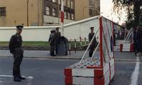 Grenzsoldaten in Alarmbereitschaft am Kontrollpunkt Checkpoint Charlie, 7. Oktober 1989