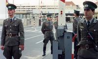 Grenzsoldaten in Alarmbereitschaft am Kontrollpunkt Checkpoint Charlie, 7. Oktober 1989
