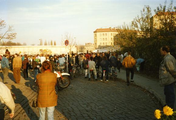 A crowd gathered at the new Eberswalder Straße/Bernauer Straße border crossing, installed on November 11, 1989