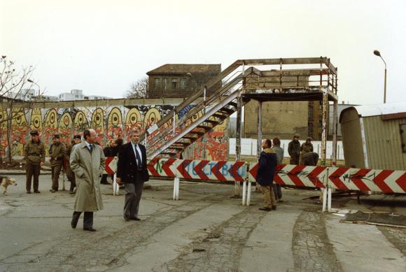 Berlin Wall (West), border guard, construction trailer, group of people, inner-Eastern Wall, observation deck