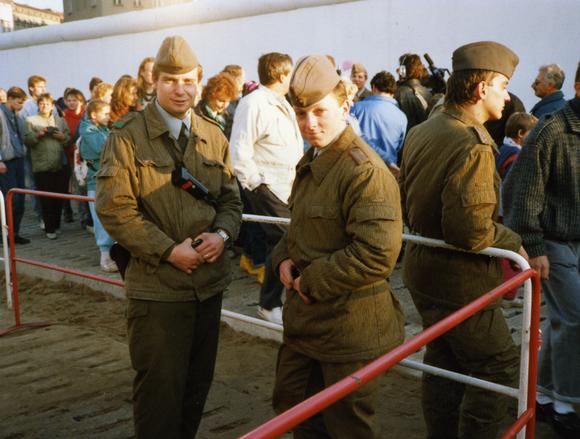 Grenzsoldaten am Grenzübergang Eberswalder Straße/Bernauer Straße
