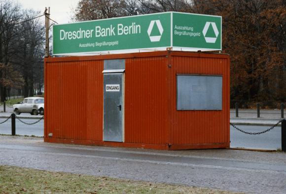 The Dresdener Bank set up "container" banks in order to payout welcome money for GDR citizens.
