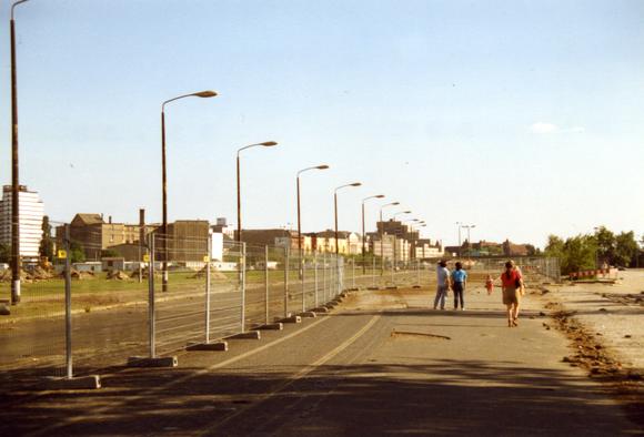 Pedestrians inside a section of the former border strip in which the Wall had already been dismantled