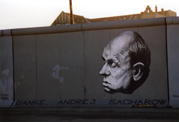 Mauerbild "Danke, Andrej Sacharow" von Dmitrij Vrubel an der 1,3 km langen East Side Gallery in Berlin-Friedrichshain