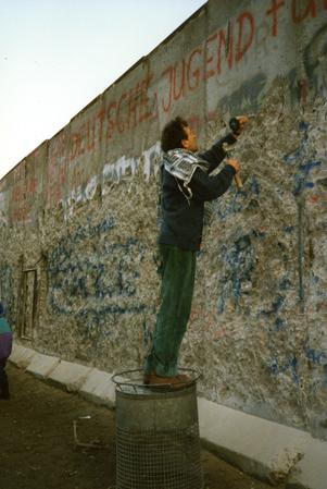 "Mauerspecht" (Berlin Wall "woodpecker") on a rubbish bin