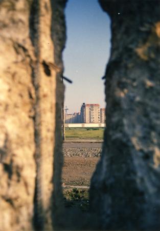 "The chiselled-out hole in the picture offers a clear view of the newly constructed buildings in the Otto-Grotewohl Straße, called Wilhelm Straße today."