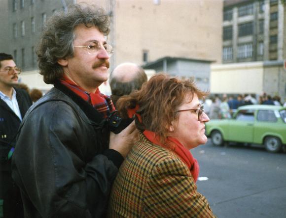 Pedestrians in Brunnenstraße where a new border crossing was installed on 7 April 1990