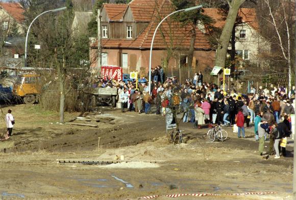 A crowd gathered at the opening of the Berliner Straße border crossing (Hohen Neuendorf)/Oranienburger Chaussee (Frohnau) on 17 January 1990