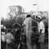 Transparent beim Straßenfest anlässlich der Öffnung des Grenzübergangs Oranienburger Chaussee (Glienicke/Nordbahn)/Berliner Straße (Hermsdorf) am so genannten "Entenschnabel", dem westlichen Ende der Straße Am Sandkrug in der brandenburgischen Gemeinde Glienicke/Nordbahn, die schnabelartig in das Berliner Gebiet hineinreicht