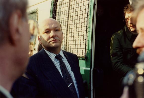 Der damalige Regierende Bürgermeister von Berlin Walter Momper am frühen Nachmittag in der Nähe des Brandenburger Tors, wo er gemeinsam mit Willy Brandt versuchte, die Menschen dazu zu bewegen, von der Mauer herabzusteigen. Siehe auch