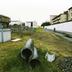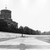 A border guard and pedestrians at the severely demolished Hinterlandmauer (inner Eastern Wall) inside the former border strip in Berlin-Mahlow