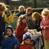 People with a banner at the street party held for the opening of the border crossing at Oranienburger Chaussee (Glienicke/Nordbahn)/Berliner Straße (Hermsdorf) at the so-called "Entenschnabel" ("duck's bill"), the western end of the Straße Am Sandkrug in the Brandenburg borough of Glienicke/Nordbahn (that reached into the Berlin territory in the shape of a duck's bill).