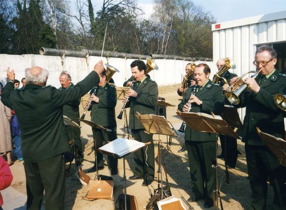 A brass band at the street festival held for the opening of the Arcostraße (Mahlow)/Beethovenstraße (Lichtenrade) border crossing on April 6 1990.