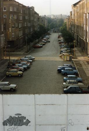 Blick von einem Wachtturm in der Bernauer Straße, vermutlich in Richtung Berliner Fernsehturm