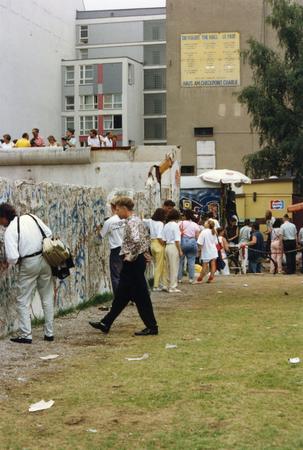 People alongside the Berlin Wall at the Friedrichstraße border crossing (Checkpoint Charlie)