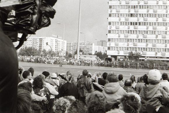 Crowd at the military parade on the 40th anniversary of the founding of the GDR