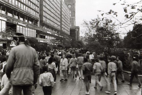 Menschenmenge auf der Rathausstraße, im Hintergrund das Rote Rathaus