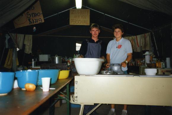 East German Refugees at the Order of Malta Relief Camp, Budapest, 10 September 1989: Malteser International workers [59/66]