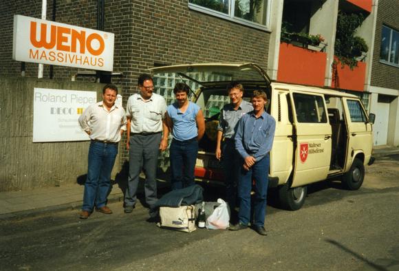 "Am Sonntag, den 27. August 1989 setzten sich im Auftrag des Auslandsdienstes des Malteser Hilfsdienstes Deutschland (MHD) Dr. Matthias Neumayer als Arzt, Andreas Wildfeuer als Rettungssanitäter, Georg Lengerke, Peter Grammelsbacher und Wolfgang Wagner von München aus in Richtung Budapest in Bewegung.