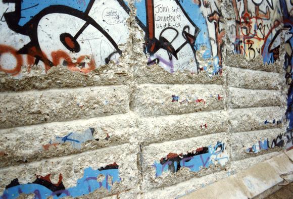 Berliner Mauer (West), Mauergraffiti, Mauerspruch, Meißelspuren