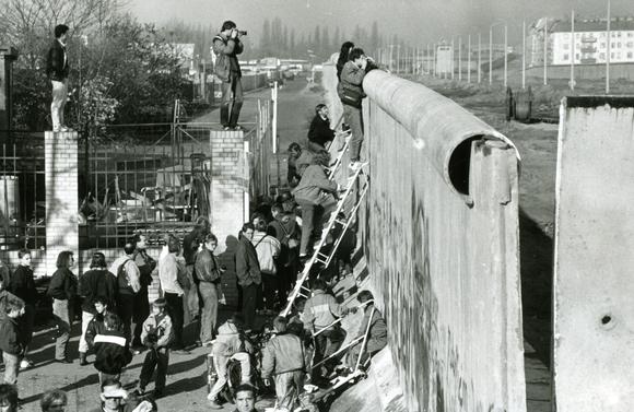 A view over the Wall onto the border crossing at Eberswalder Strasse/Bernauer Strasse that was installed on 11 November 1989.