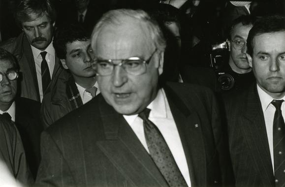 Der damalige Bundeskanzler Helmut Kohl mit Regierungsdelegation in Dresden am Hotel Bellevue