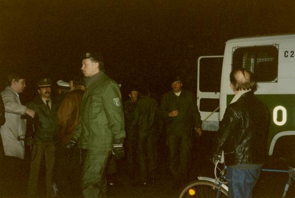 Police officers and bystanders at the Invalidenstraße border crossing, one of the seven road crossings between East and West Germany (between the Soviet and British sectors)