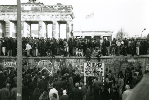 Schaulustige auf und vor der Mauer am Brandenburger Tor