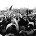 Crowds moving in both directions at the Oberbaumbrücke border crossing, one of the seven road border crossings between East and West (Soviet and American sectors, respectively) that could only be used by pedestrians.