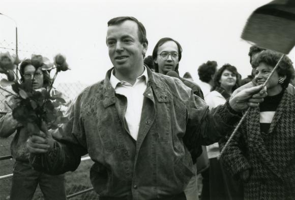 Passanten am Potsdamer Platz, der ab 12. November 1989 als neuer Grenzübergang diente