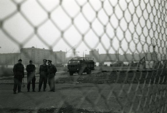 Border patrol officers in the border strip at Potsdamer Platz, which served as a new border crossing as of November 12, 1989