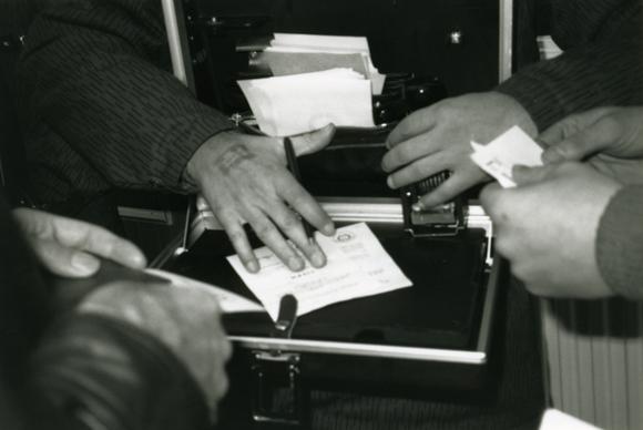 Passport control at Potsdamer Platz border crossing, which was opened on 12 November 1989