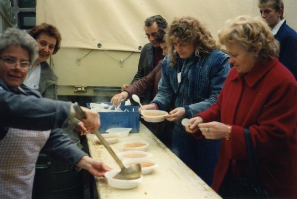 Malteser Emergency Service workers ladle out soup