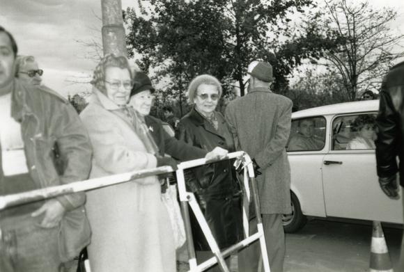 People waiting in line at Falkenseer Chaussee border crossing, that was installed on 13 November 1989