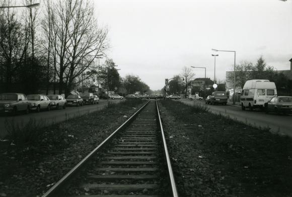 Straßenbahngleise in der Stubenrauchstraße in Berlin-Rudow