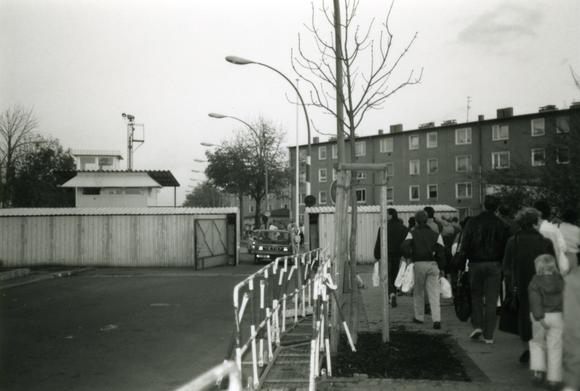 Pedestrians at Sonnenallee border crossing, one of seven road crossings between East and West Berlin (between Soviet and US American sectors) during the time of the Berlin Wall