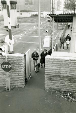 Pedestrians at Chausseestraße/Liesenstraße border crossing, one of seven road crossings between East and West Berlin (between Soviet and French sectors) during the time of the Berlin Wall