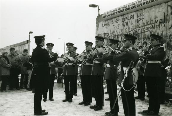 British Army brass band at Potsdamer Platz border crossing that was installed on 12 November 1989