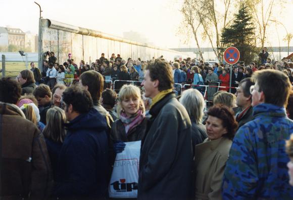 Crowd of people at Potsdamer Platz border crossing, which was newly openend on November 12, 1989