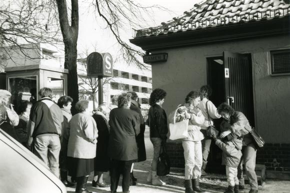 Queue in front of a ladies' restroom