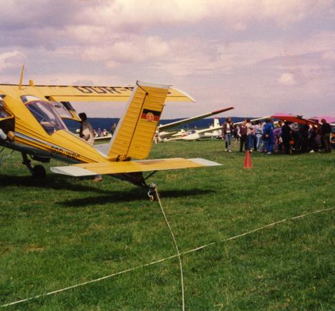 Offizielle Wiedereröffnung des Nordhäuser Segelflugplatzes; im Vordergrund ein Schleppflugzeug für Segelflugzeuge vom Typ "Wilga", dahinter mehrere Ultraleichtflugzeuge