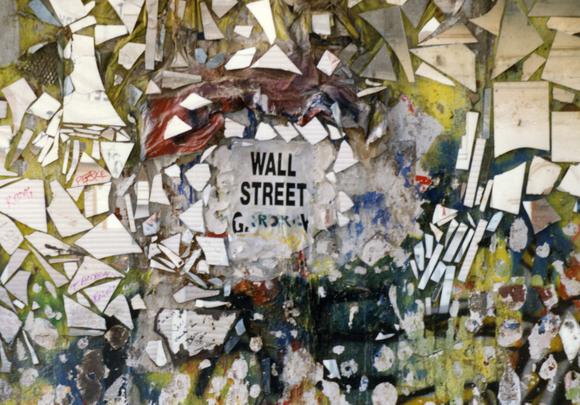 A Wall art mural made with shards of broken mirror, presumably located across from the "Wall Street Gallery" in Zimmer Strasse