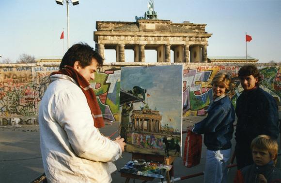 Ein Maler an der Mauer vor dem Brandenburger Tor