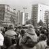 Great crowds at both of the newly installed border crossings at Potsdamer Platz and Brandenburg Gate; "Mauerspechte" (Berlin Wall "woodpeckers") chip away at the still intact Berlin Wall between the two border crossings; closeups of the statue, "Der Rufer" ("The Caller") by Gerhard Marcks, on Straße des 17. Juni