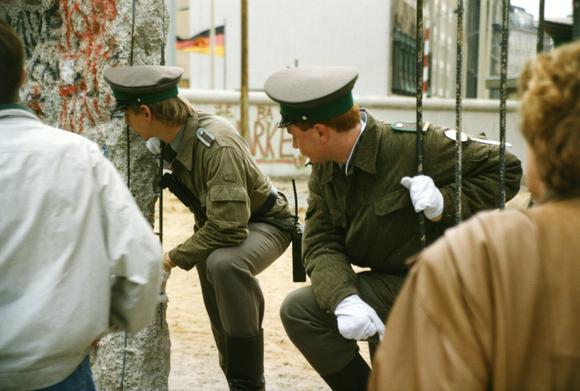 Two border patrol officers at the Berlin Wall