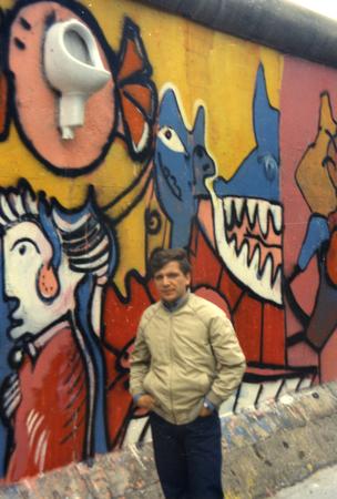 art event, Berlin Wall (West), graffiti (mural), man, one person