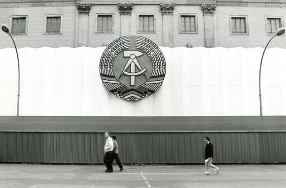 Setting up the stage at the Humboldt University for the 40th anniversary of the GDR