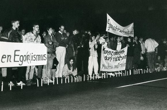 Spontane Demonstration vor dem Staatsratsgebäude gegen die Wahl von Egon Krenz zum Vorsitzenden des Staatsrates der DDR und des Nationalen Verteidigungsrates am selben Tag